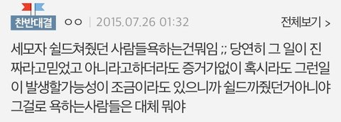 우선 다수의 세모자 사건의 진실을 알게 된 후 충격먹은 글들의 댓글을 보면 많은 사람들이 선동 당했던 사람들을 뭐라하는 댓글이 있음.