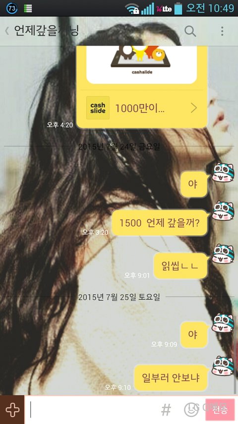 일단 내 친구를 a라고 하겠음. 어느날 a랑 나랑 방방을 감. 근데 나는 2시간 놀꺼라고 생각하고 총 7000원을 들고감. 방방이 2시간에 5000원임. 근데 a가 1시간만 놀고 간식거리 사먹으려고 4000원만 들고옴. 그래서 내가 걍 1000원을 빌려줬음. 그럼 a가 남은 돈이 없고 나는 1000원이 남음. 근데 실컷 잘 놀다가 a가 같이 음료수 사 먹자는거임.그래서 우리 둘이 각각 500원짜리 음료수를 사먹음. 그럼 a가 총 1500원을 갚아야 됨. 근데 일주일이 되도록 갚지를 않음. 카친 해 놓은것도 끊고 카톡 읽씹ㅋa가 카친 끊기 전에 내가 욕 안 쓰고 카스에다 '니가 쓴 그 돈 엄연히 내 돈이고 내 돈을 니가 빌려썼으면 갚아야 되는 거 아니니?'하고 댓글달았는데 '아 예' ㅋㅋㅋㅋㅋㅋㅋㅋㅋ후..