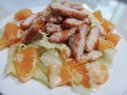 집에 치킨너겟 있길래 튀겨서 양상추랑 오렌지와 함께 냠냠
