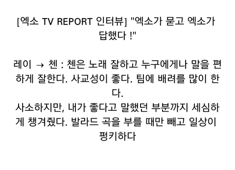 매니저 인터뷰"첸은 매니저 스탭과도 스스럼 없이 어울리는 장난끼 많은 멤버이다"