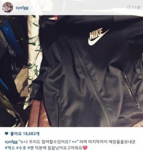 같은 소속사 선배 수영의 애장품 기부 행사에 같은 멤버 수호(준면)랑 먼저 가서 자기가 즐겨입던 애장품을 기부