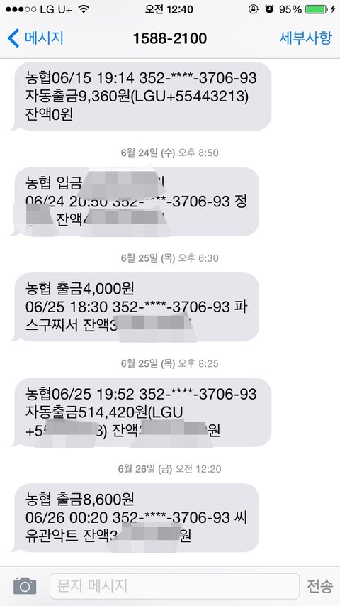 그리고 한달 뒤 그 휴대폰의 요금을 자동이체로 등록해놓은 은행 통장에 한동안 사용없다가 이사로 인해서 큰 돈이 들어오고 나갔어야 하는 금액중 목요일 저녁에 50만원의 위약금이 출금되었습니다