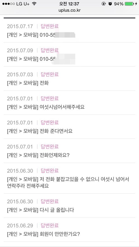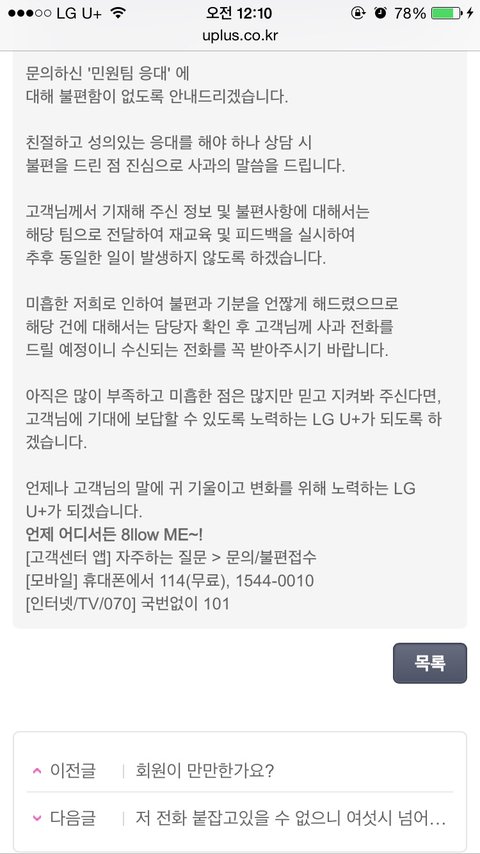 진짜 경찰서에 신고할까 인터넷에 올릴까 하다가 제가 아이폰이라 녹취본도 없고해서 그냥 엘지 홈페이지에 불만 접수하니까 고객님한테 사과전화를 할거라고 꼭 오는 전화를 받아달라해서 그날 기다렸는데 안왔고 그다음날도 안오고 그 다음날 다시 글을 기재하니까 죄송하다며 오늘은 전화를 할거니 꼭 받아주라며 그 담당부서에 전달해서 다시는 이런일 없도록 재교육 피드백 한다더군요