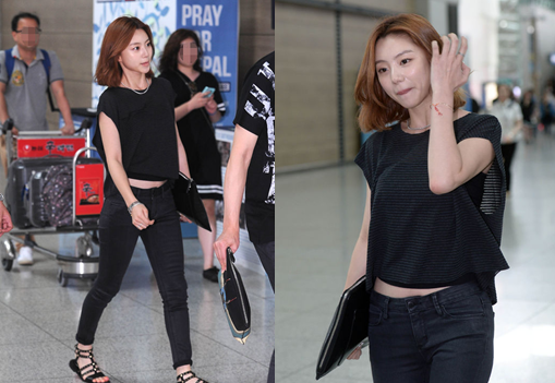가끔은 크롭탑으로 은근 섹시한 공항패션도 완성해주고~