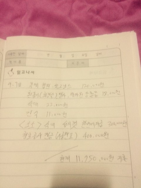 증빙내역 요청하니 연습장에 대충 적어서 주고..