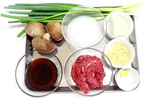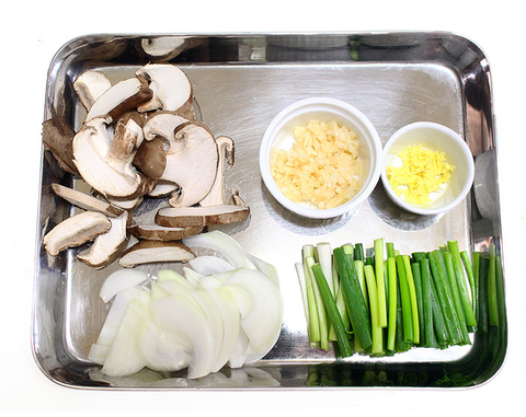 표고버섯 3개, 소고기 70g, 양파 1/4개, 쪽파 한줌, 마늘 1작은술,