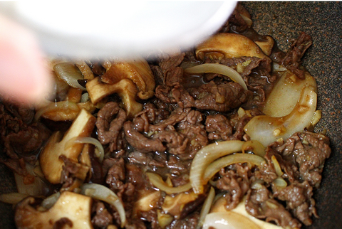 소스의 풍미도 좋고 몸에 좋은 표고버섯을 듬뿍 넣어 더욱 맛있는 표고버섯 소고기 덮밥이에요