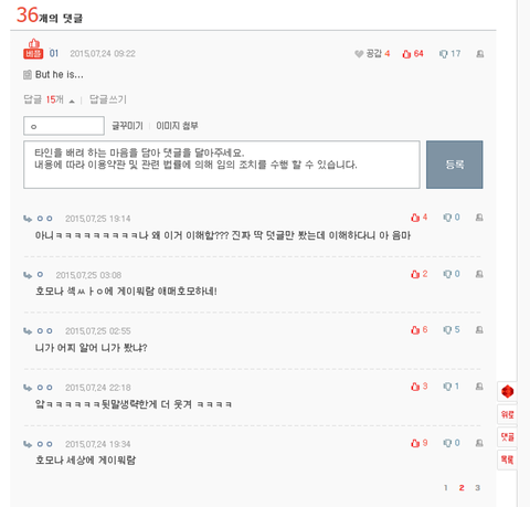 댓글보니까 저런식으로 게이?라는듯이 써있어서ㅇㅅㅇ......