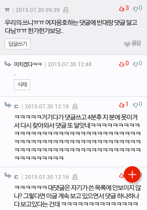 남자들아 잘 봐라ㅋㅋ 성폭행범으로 몰릴뻔한 글 한번 썼다고 무조건 여혐종자로 몰고, 저 "ㄱ2"의 대댓이 나라고 소설 쓰는게 일부 20~30대 여자들의 현실이다ㅋㅋ