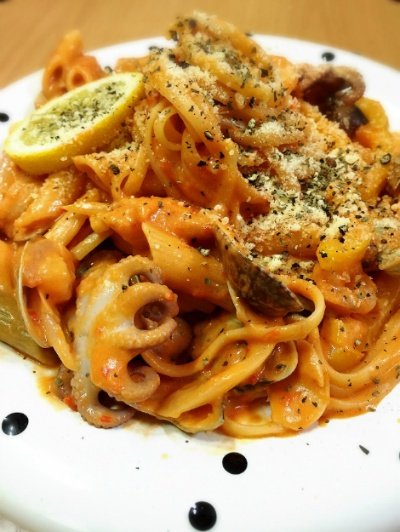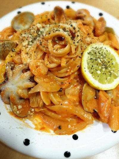 쭈꾸미, 새우, 바지락도 넣은... 짬뽕파스타지만 지금까지 파스타중에 가장 내스탈인듯!!