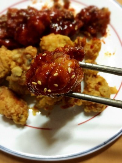 나름 양반후반인데.... 기름이 깨끗해서 그런가 너무 맛있었습니다ㅋㅋㅋㅋ 양념은 백주부님꺼 대충보고 올리고당, 케찹, 고추장, 간장, 설탕등을 넣고 졸였는데, 그럴싸하쥬??ㅋㅋㅋ