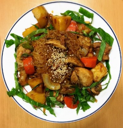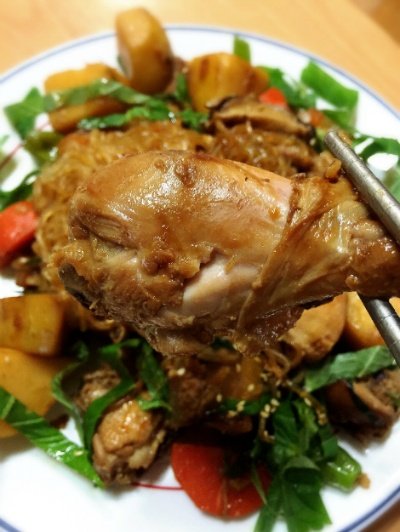 간장베이스 조림닭인데 저런걸 왜 찜닭이라고 하는지 의문이었지만.... 치킨하고 남은 닭으로 조렸더니, 위에 등갈비랑 같은색깔에 고기만 다른 비쥬얼이네요ㅋㅋ 조림간장+쯔유+다랑어간장으로 졸여서 매우 맛있었습니다.
