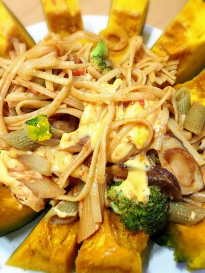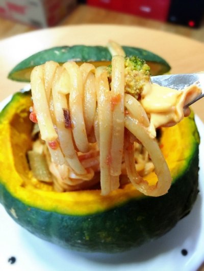 단호박을 찌는동안 파스타를 하고 뚜껑을 따고 파스타를 담고 모짜렐라가 없어서 체다슬라이스를 넣어주고 덮은뒤 상을 차리다보면 치즈가 다 녹습니다.