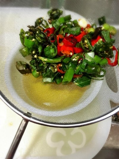 파와 고추가 많이 남았을때, 죽어간다 싶으면 아래처럼 파고추 기름을 만들어놓고 각종요리에쓰면 향도좋고 매우 괜찮더라구요, 넉넉히 만들어놓고 썼습니다. 볶음라면을 먹을라고 했는데, 라면은 없고 스프만있어서....사실 술취하면 뿌라를 먹는 버릇이 있어서 집에 스프가 많습니다ㅋㅋㅋㅋ