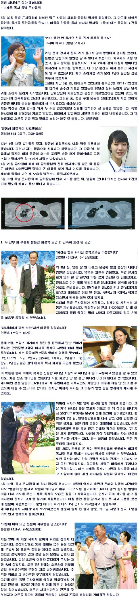 "치료하고 축복하시는 하나님을 만났습니다"
