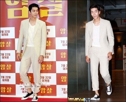 얼마 전 암살 시사회에 베이지 수트에 컨버스 스니커즈 신고 등장!!