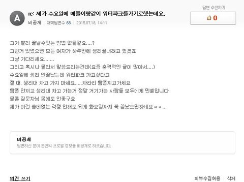 생리할때 당연히 워터파크 가면 안되는거잖아요