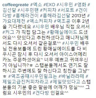 시우민 커피차 인스타그램에 짧은 후기 올라옴