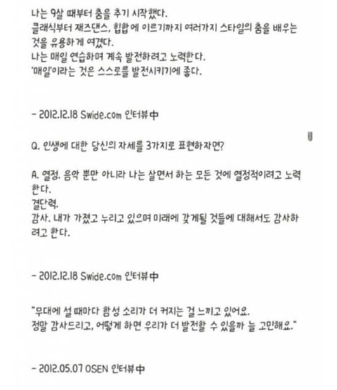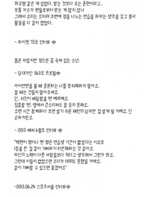 평소 인터뷰 찾아보면 진국같은 아이돌같음.(인터뷰는 사실 저것보다 더 많음)