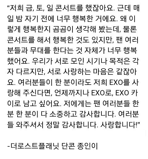 앞으로도 초심잃지 않겠다는 카이 본인의 말처럼 초심잃지 않는 엑소카이가 되도록 노력할 듯
