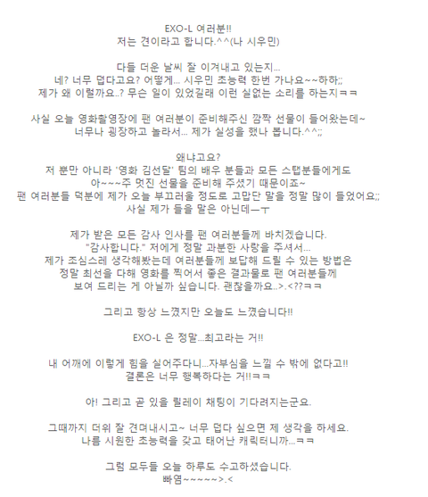 민석이 글은 볼때마다 진심이 느껴져서 좋아ㅠㅠㅠㅠ팬들한테 받는 사랑을 당연하게 생각하지 않고 항상 진심으로 고마워하는 착한 아이ㅠㅠㅠㅠ 민석아...난 오히려 너한테 받기만 하는 것 같아서 항상 고마우면서도 미안해..가수해줘서 정말 고마워 민석아!!!!!