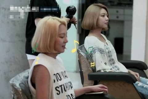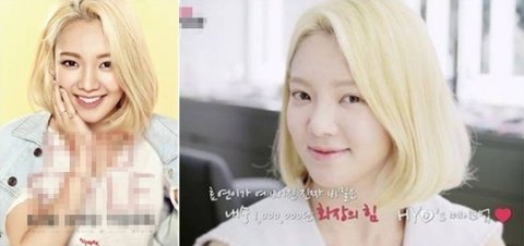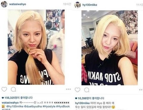단발로 싹둑 자르고 금발로 파격 변신한 효연의 헤어스타일부터