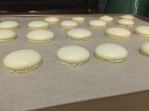 원래 민트색 식용색소를 넣어서 구웠는데 색이 잘 안나와서 속상해한 마카롱.