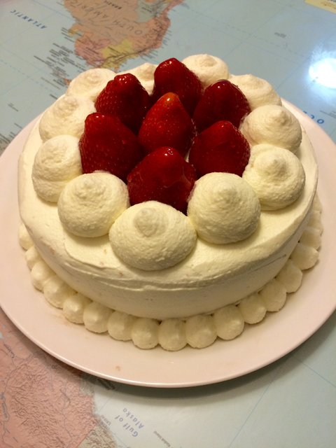 하지만 더운 여름날 만들어서 중간에 생크림이 좀 분리된.. 케이크.