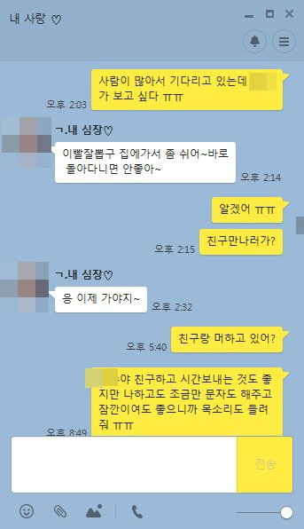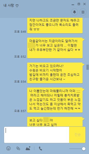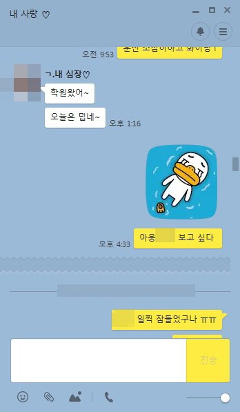 대화를 이어갈라해도 뚝뚝 짤리는 기분. 어떨땐 이모티콘만 날아오고 끝납니다.