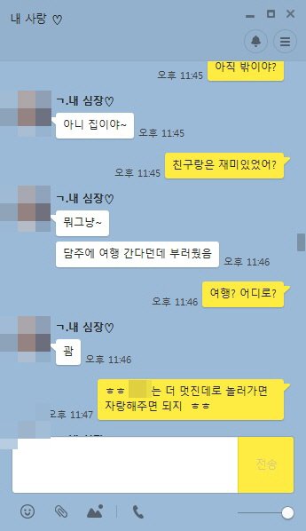 그래서 그냥 크게 얘기하진 않고 "나 질투나려고하니까 답장하는거는 자제해줘" 라고