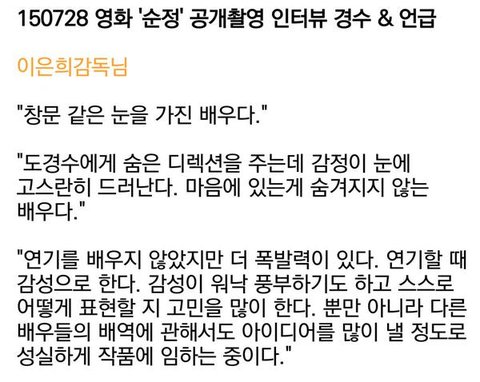 영화 '순정' 공개촬영 중 감독님과 배우분들의 언급 & 경수 인터뷰 정리