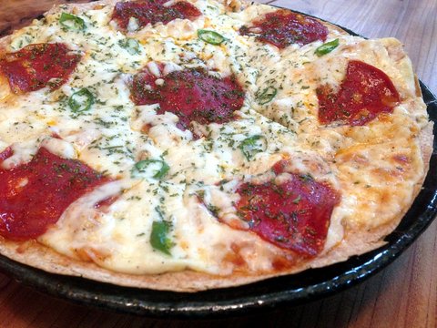 또띠아 위에 이것저것 올린 피자는 내키는 대로 혹은 냉장고가 허락하는 대로