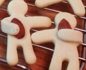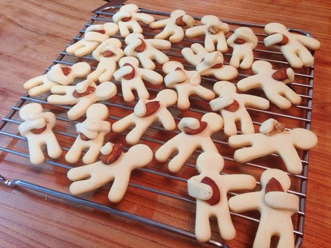 아몬드를 안고 있는 진저맨 쿠키예요. 쿠키 베이스는 연유쿠키.