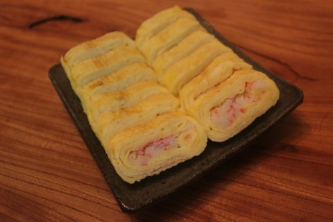 다음 날 점심반찬인 계란말이 속에 크래미를 찢어 넣어봤습니다. 계란말이랑 잘 어울려요.