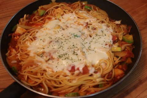 부대찌개 마냥 팬에 가득 해가지고 덜어 먹어요. 이날은 치즈도 올렸네요.