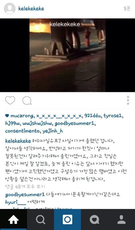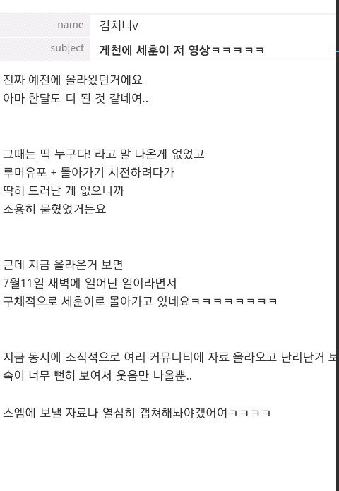 실시간으로 보고 캡쳐한뒤 최초 루머 영상