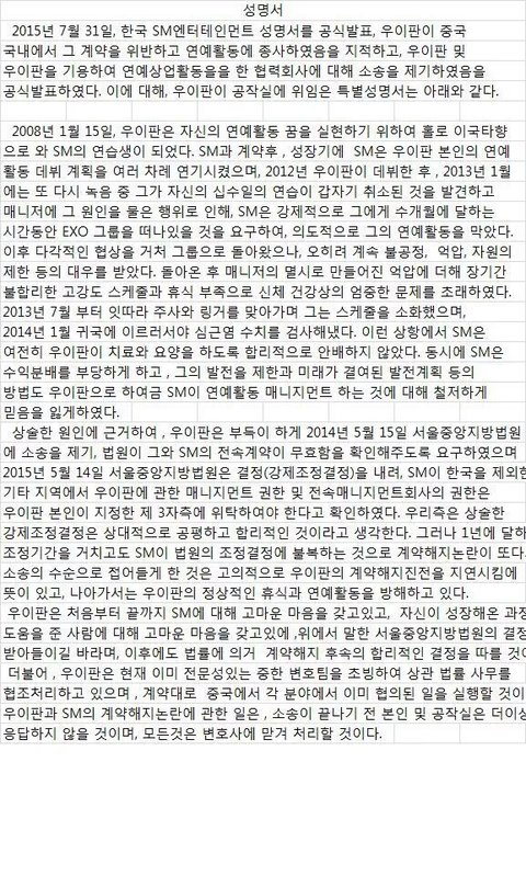 우이판 공식성명 번역본(어이없음주의)
