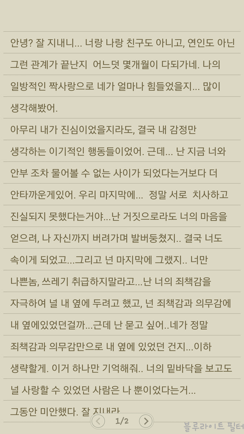 그 사람한테 편지를 써보았어요.. 너무 견디기 힘들어서요....