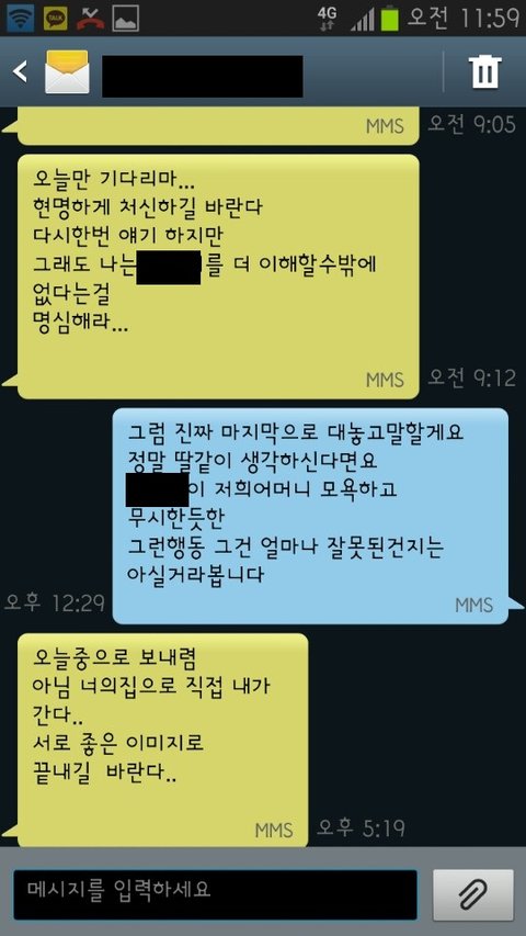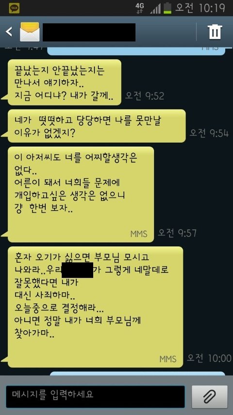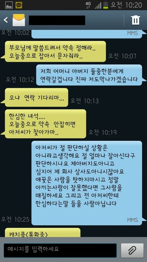 부모님께 연락갈거라는 말을해놓구 여자애랑 해결하려고 메세지보냈습니다
