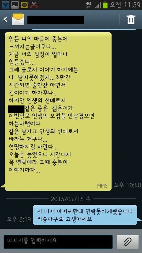 자길 기만했냐는 문자가 온겁니다