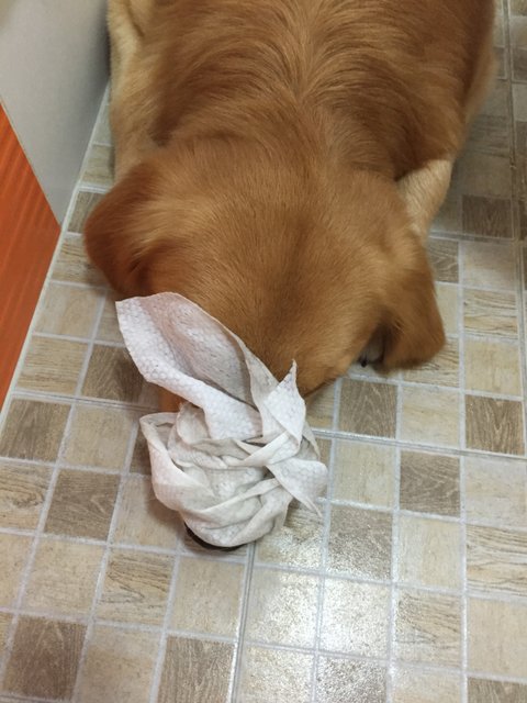 청소포 물고 도망가다가 막다른 길..ㅎㅎ잡힘