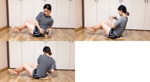 몸통이 뒤틀리는 느낌으로 좌우로 회전하는데 옆구리와 복부에 자극이 오는 것을 느끼면서!