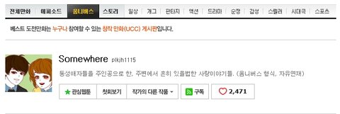 베도에 연재하다가 네이버로 정식연재 넘어 온 작품들 많죠? (ex. 에이머, 오!주예수여, 소녀의 세계, 윈터우즈, 뷰티풀 군바리, 공복의 저녁식사 등등) 그 외적으로도 다른 사이트로 간 작품들도 많지만 좋은 작품인데도 불구하고 베스트 도전에 있는 작품들도 많습니다. 정말 볼 때마다 왜 다른 사이트로 못 갔는지 의문이 드는 작품도 많아요ㅠㅠ