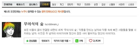<무의식의 숲> 완결 됐습니다ㅠㅠ저 개인적으로 이 작품 좋아했고 또 베도에서 완결되서 아쉬운 작품 중 하나라고 생각이 듭니다. 소재하고 스토리 구성이 굉장히 탄탄하고 여운이 많이 남는 작품입니다. 무엇보다 주인공들이 잘생..겼...bb 쿨럭. 단행본이 제작된다면 누구보다 광속 클릭해서 살 것 같은 충동이 들 정도로 이 작품 진짜 재미있고 좋아요!