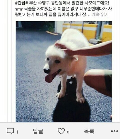 일요일이라 어쩔수 없이 있다가 월요일날 오전에 송정에 있는 유기견 보호소랑 구청에 문의했는데 사모예드는 들어온 애가 없다고 하시드라구요