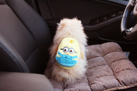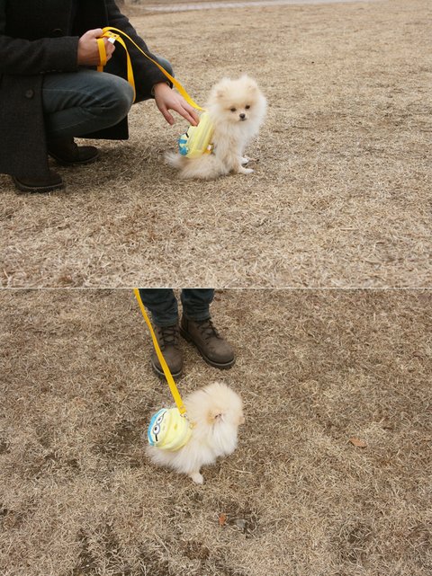 산책하기 전에 미니언 가방 메고 사진 찍어봤어요ㅎㅎㅎㅎ