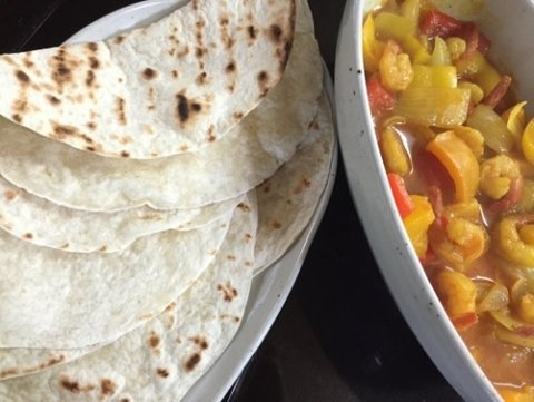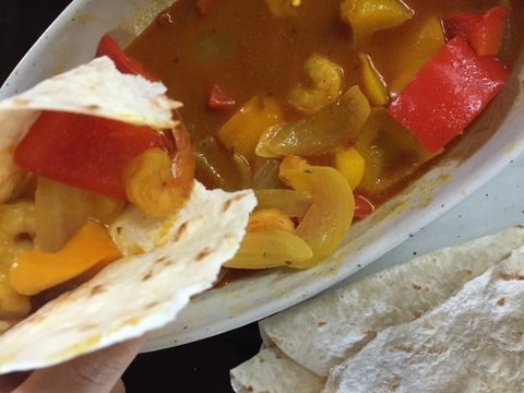 방송처럼 레드카레 새우 볶음 만들어서 또띠아 있는 거 몇 장 구워서 싸먹었는데