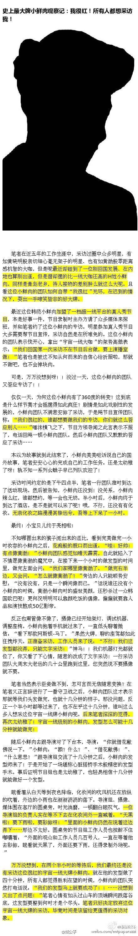 방송녹화 시간 지각 했는데 자기가 하고온 머리 스타일 맘에 안든다 고 다시 하겠다고 해서 방송 계속 딜레이 시키고 사전 인터뷰도 녹화 아닌 문자로 해서 스탭이 웨이신으로 친구 한테 보낸게 털렸음 ㅋㅋ