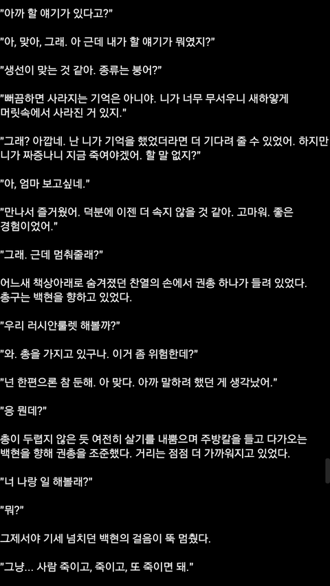 죽이려고 따라왔는데 찬0009열이 여유롭게 있던 상황이구