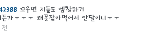 쉴드치려면 제대로 치세요 이런식으로 웃기는 댓글 싸질러서 비웃음거리되기싫으면ㅋ 인스타 돌아댕기다가 너무 어이없어서 캡쳐함ㅋㅋㅋㅋ ╋ 내용 : 꼬우면 지들도 엠@창하거 댕기든가ㅜㅜㅜ 왜못잡아먹어서 안달이니ㅜㅜ